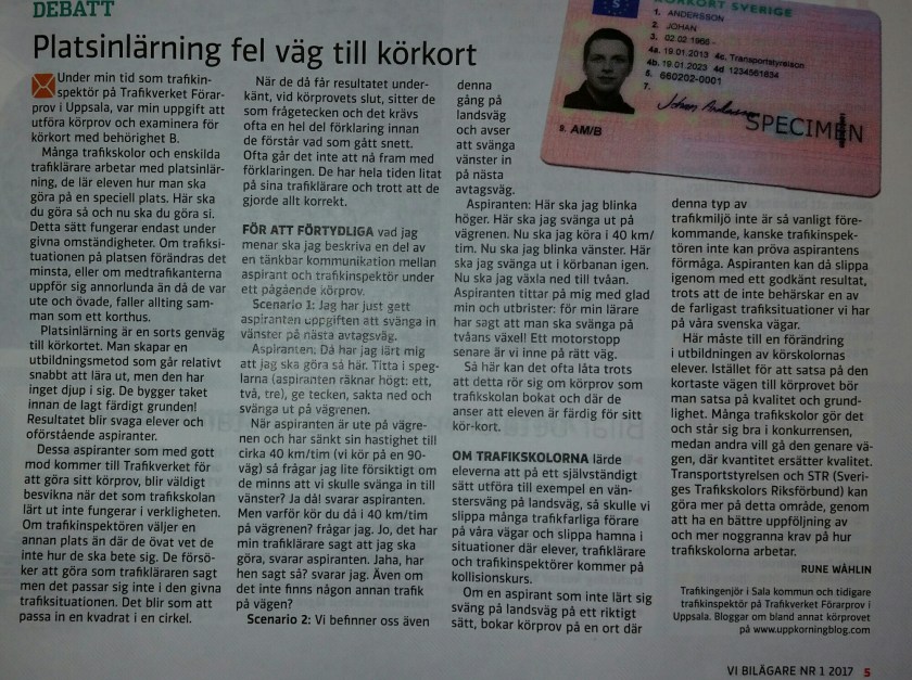 För en tid sedan skrev jag en text om platsinlärning, som nu är publicerad i en större svensk biltidning. Om/när den publiceras på nätet lägger jag ut länken här.